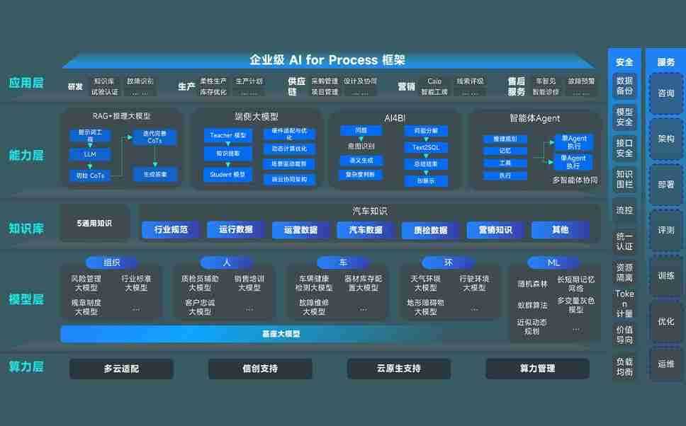 端到端的一站式AI工作空间深度融合了从企业战略规划到日常经营的全流程业务板块,,,,定向解决车企内部领域多、、部门多、、、链条长、、、、场景碎片化等难题,,,,支持车企快速构建以AI为核心的生产力写作体系,,实现任务执行与AI能力的无缝集成与交互